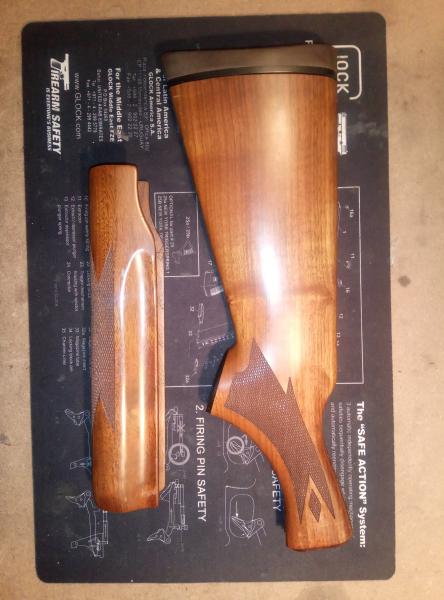 Vendo culata y guardamanos madera, procedente de una Remington 870 Wingmaster.