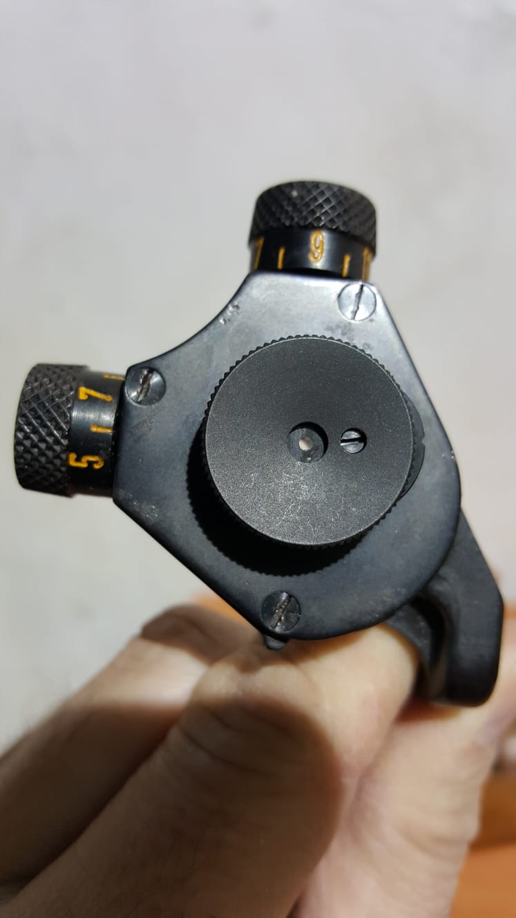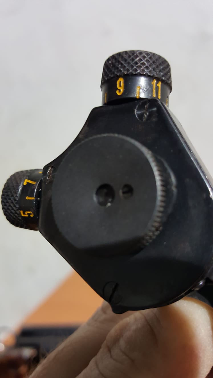 diópter y punto de mira originales para fusil suizo Schmidt Rubin K-31.No vale para el K-11(que es el que tengo).Está flamante y en perfecto estado conservación.