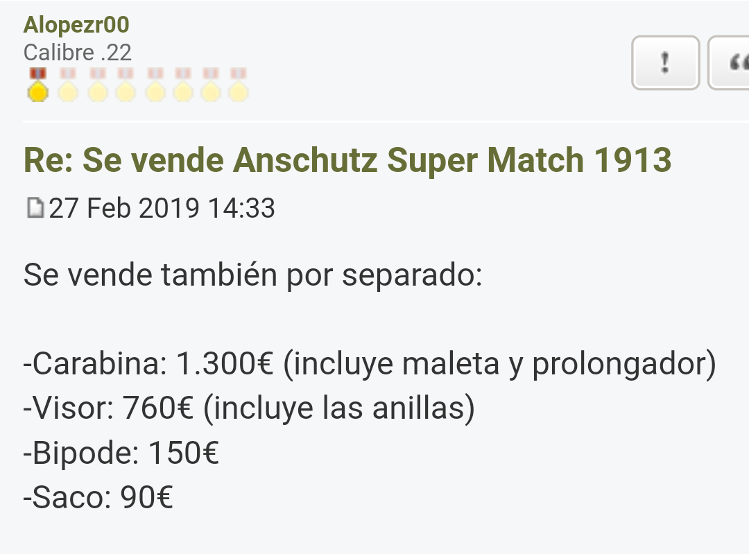 Tienes un problema , ese mismo bípode lo vende un compañero tuyo en 150€ en la sección de carabinas