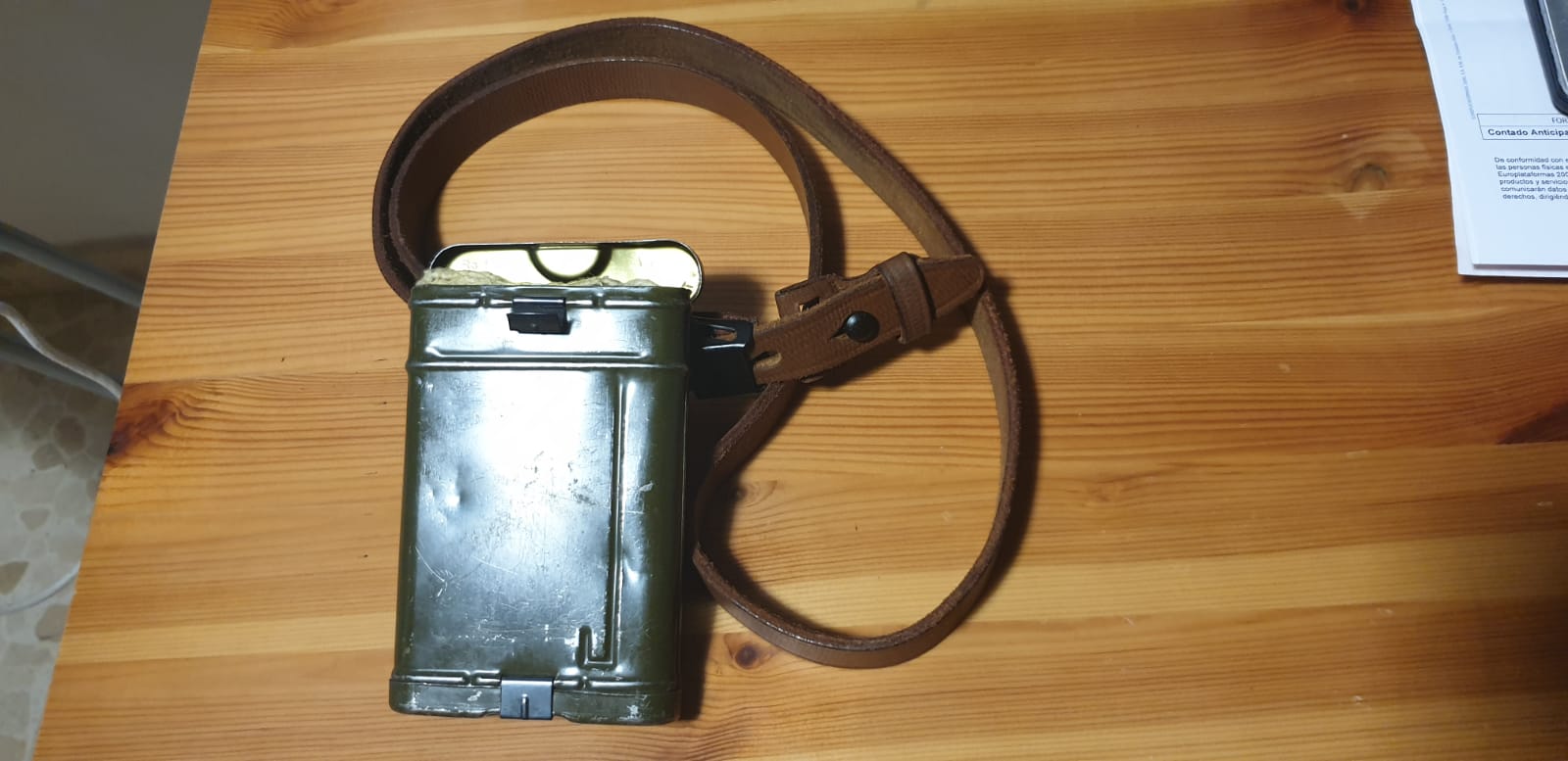 -Kit de limpieza sin uso del fusil K98 de post guerra fabricado en la antigua República Federal Alemana, marcada Rg.f.Gew (Reinigungsgerät für Gewehr que significa kit de limpieza para fusil) WBC 1/63 (fabricante y producido en enero de 1963). Tiene los accesorios: aceitera de bakelita, cepillo, cadena, dos feminelas... en muy buen estado asi como la petaca contenedor. 50€