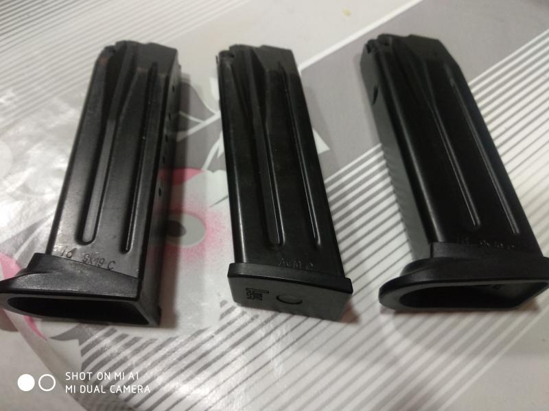 Vendo lote de tres cargadores de HK originales para el modelo USP Compact....dos de ellos con apoyo para el dedo y el tercero "versión corta".... De 13 cartuchos de capacidad.