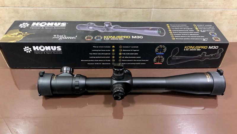 Visor KONUSPRO M-30 de 6,5-25x44 reticula iluminada en dos colores (rojo y azul) .