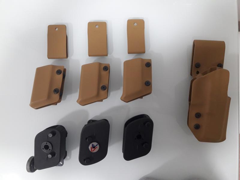 - tres portas kydex coyote, ademas de tres extensiones para poder usarlos en ceñidores de servicio