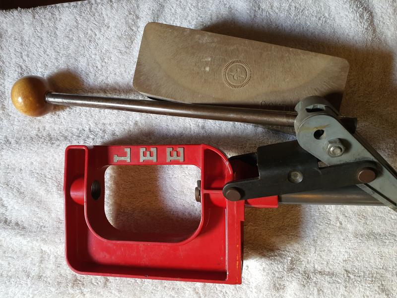 Hola, se vende la prensa Lee que aparece en las fotos, tiene poco uso y está en perfecto estado, precio 60 euros con portes incluidos, envio por correo certificado a cualquier parte de España, forma de pago transferencia bancaria o paypal. La caja para balas de calibre 38 que aparece en la foto va incluido, vacia por supuesto, caben 75 balas. Saludos.