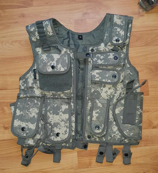 Vendo chaleco tactico en camo digital. Esta usado pero perfectamente funcional. Talla universal. Se ajusta con cinchas laterales.