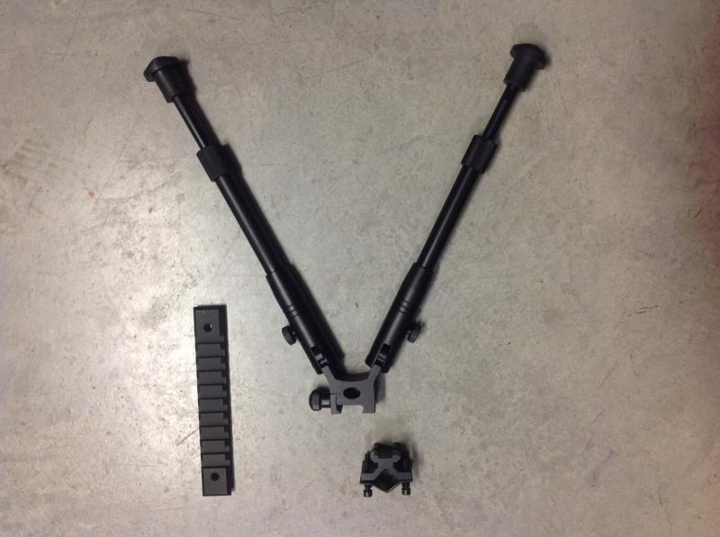 Vendo el bipode de la foto. Esta nuevo, nunca se uso. Trae dos piezas para colocarlo en el arma, o directamente con un carril, o con la pieza que es una abrazadera que incorpora un pequeño carril. Las patas son extensibles y tambien se pliegan hacia atras. Su precio es 20€. Se puede ver y recoger en Valdemoro. Si hubiera que enviarlo, los gastos serian por cuenta del comprador (7€).