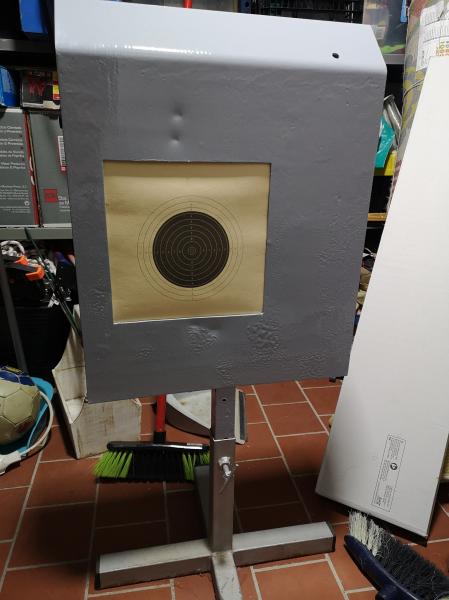 Está hecho de chapa y recién pintado por el frente.