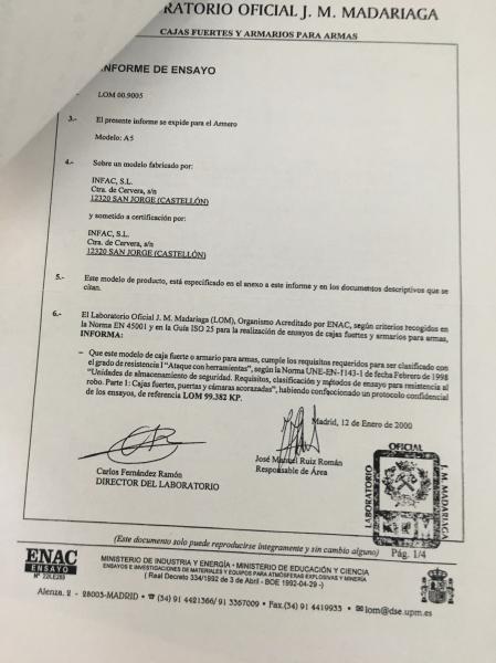 Homologado según la Normativa UNE-EN 1143-1