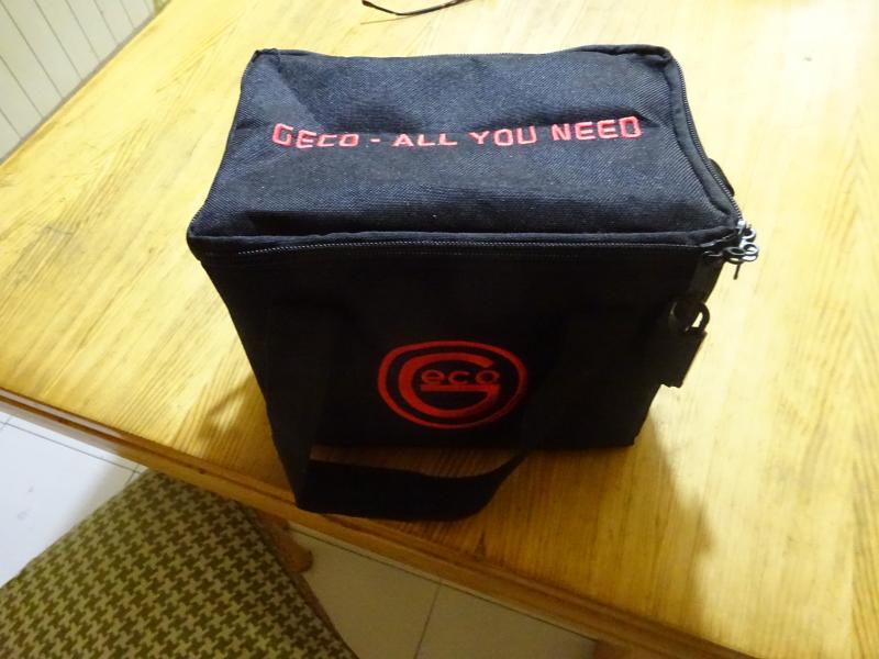 De regalo bolsa portaobjetos de cordura de nylon con cremalleras de seguridad y candado de combinación con anagrama bordado en rojo de Geco y dimensiones de: 24X18X14 cm.