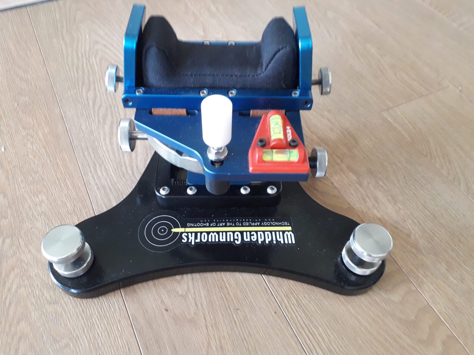 Es una torreta de alta competición muy rígida que da 15 kilos en báscula, a los que hay que sumar la maleta, el saquete extra y las bases de apoyo.
