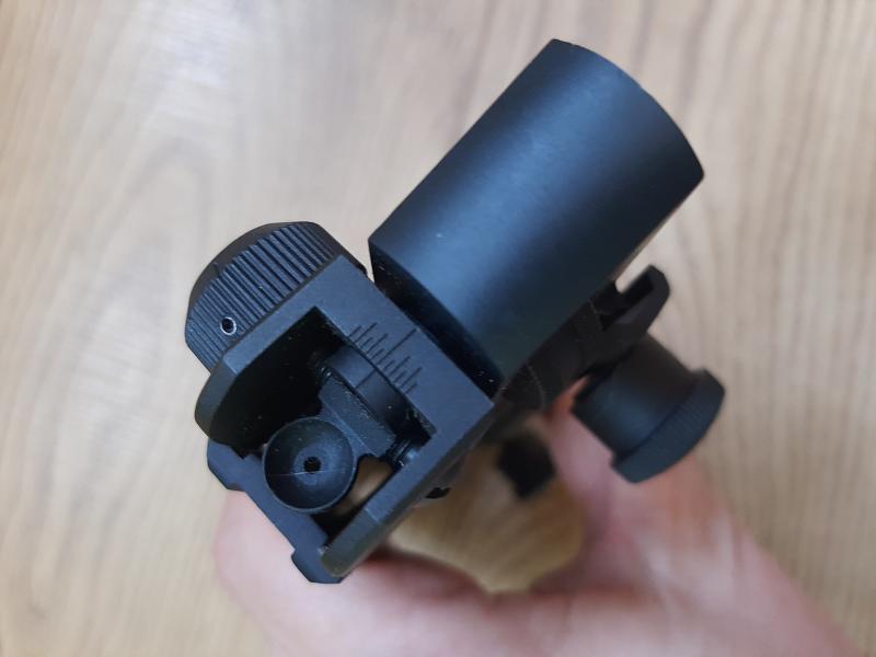 Asa para Ar15, tanto para rifle como carabina, con carril picatini y mira trasera, corrección alza y deriva + dos posiciones de diopter, precisión y CQB.