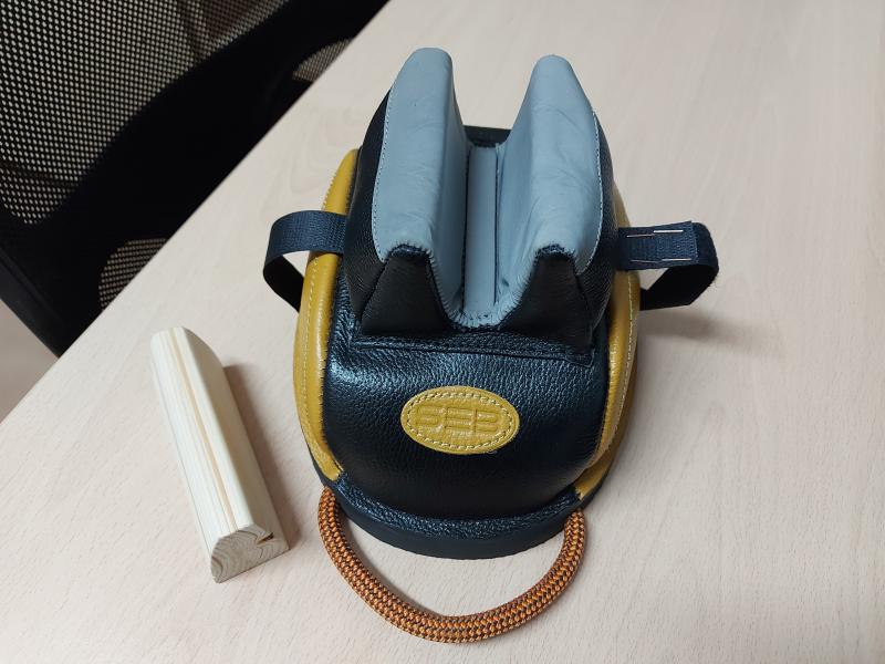 Vendo por abandono de la modalidad saquete trasero SEB con arena (peso total 3,6 Kg) cinta 3m deslizante, usado solo dos o tres veces, lleva también asa de transporte. La distancia entre orejas es de 13 o 16mm no lo recuerdo con exactitud.