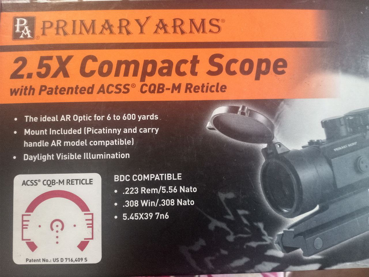 Vendo visor 2.5 primary arms visor compacto con aumento de 2.5, similar a un punto rojo, con la ventaja que la reticula esta grabada y funciona sin pilas, cuenta con caida de proyectil e iluminacion en rojo.