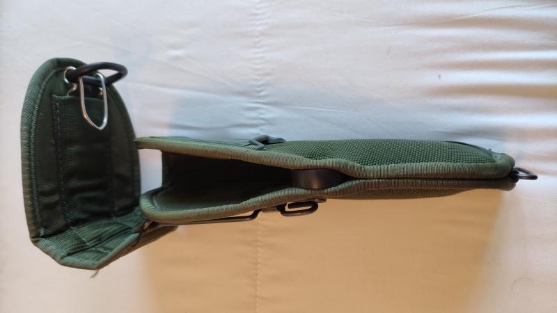 Vendo funda de lona, en color verde oliva, para pistola Beretta 92 (creo que es una funda universal que también vale para otras pistolas de combate)