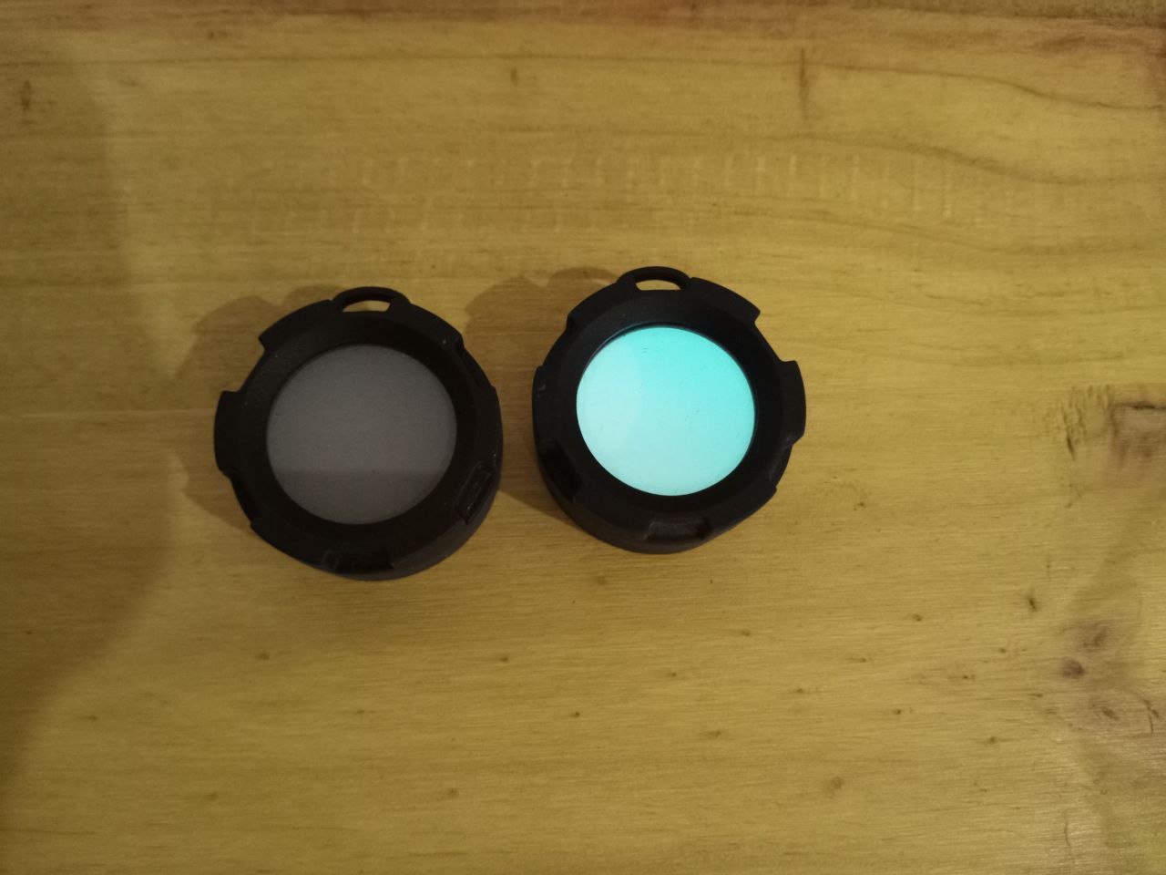 Vendo dos filtros blanco/rojo para linternas OLIGHT para linternas con cabezal de 63 mm como Javelot Pro, Javelot Pro 2, Javelot Turbo, M3X Triton, M3XS-UT y SR52