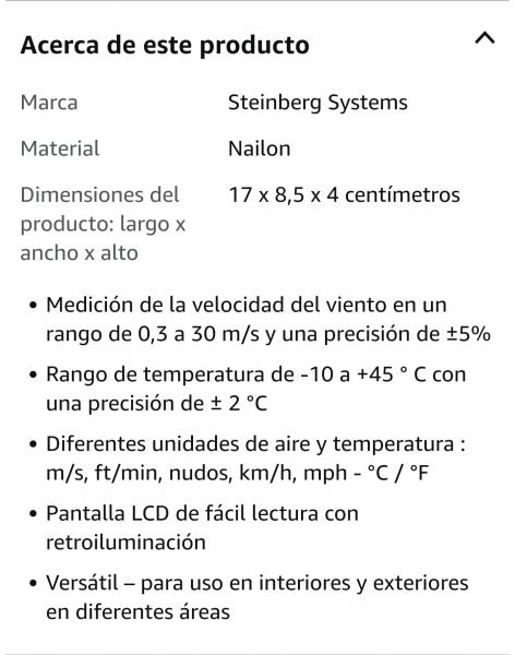 Re: Anemómetro digital SBS-AM-30C Steinberg Systems