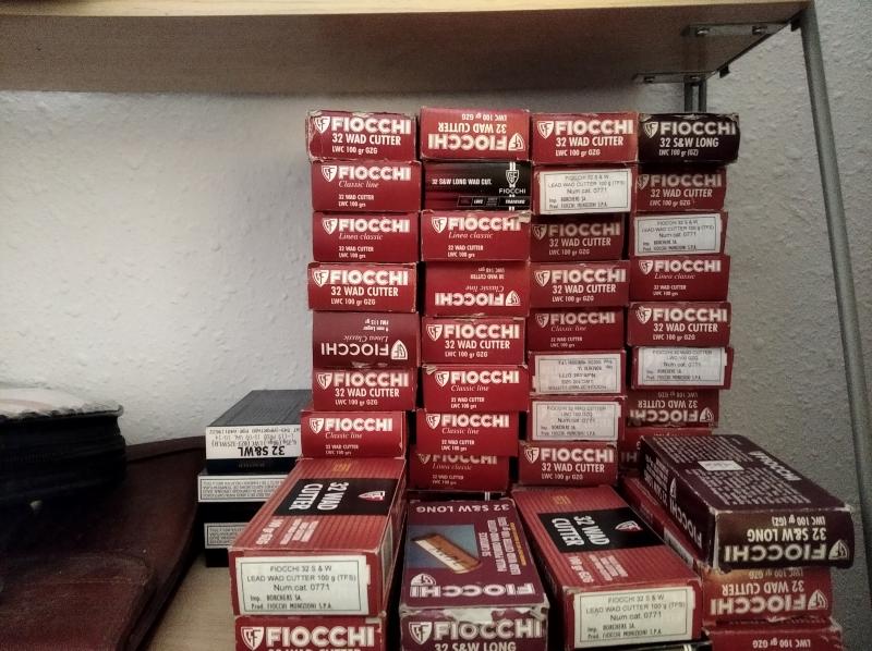 Vainas Fiocchi, algunas sin ninguna recarga, muchas con una recarga, y algunas con dos recargas. Todas con cajas.