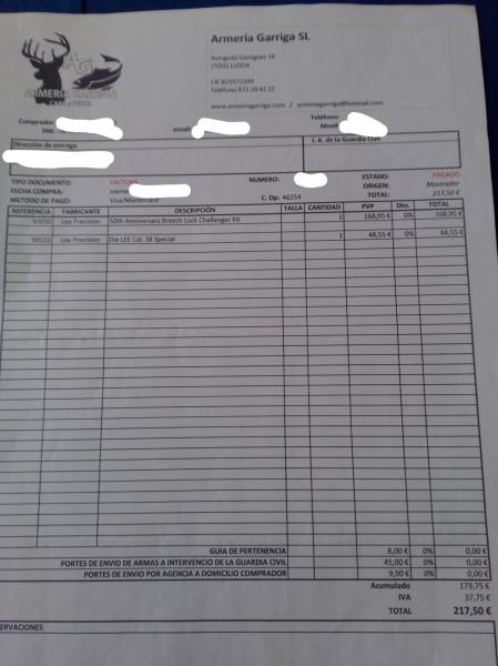 Cedo Certificado de Homologación y Factura Prensa Lee para alguien que no los tenga y quiera dar de alta en IA. una prensa similar, la mía la rompí recargando para arma larga y la reciclé.