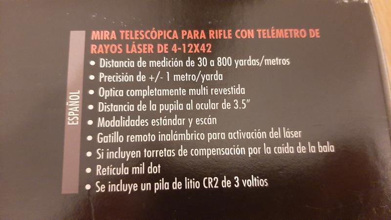 Tiene un mando a distancia por infrarrojos para colocar en la parte delantera del rifle y poder accionar el telémetro con esa mano, pero no funciona (Cuando lo compré funcionaba, pero ahora no va ni cambiándole la pila). El telémetro funciona bien, pero hay que accionarlo desde el botón del visor. Desconozco si será posible reparar el mando a distancia.