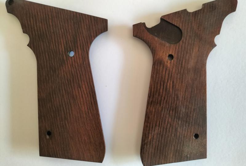 -Cachas anatomicas de tiro, para zurdos, no ajustables, talla M/L , en pasta sobre madera, con alguna señal de uso.Precio 55 euros + envio.