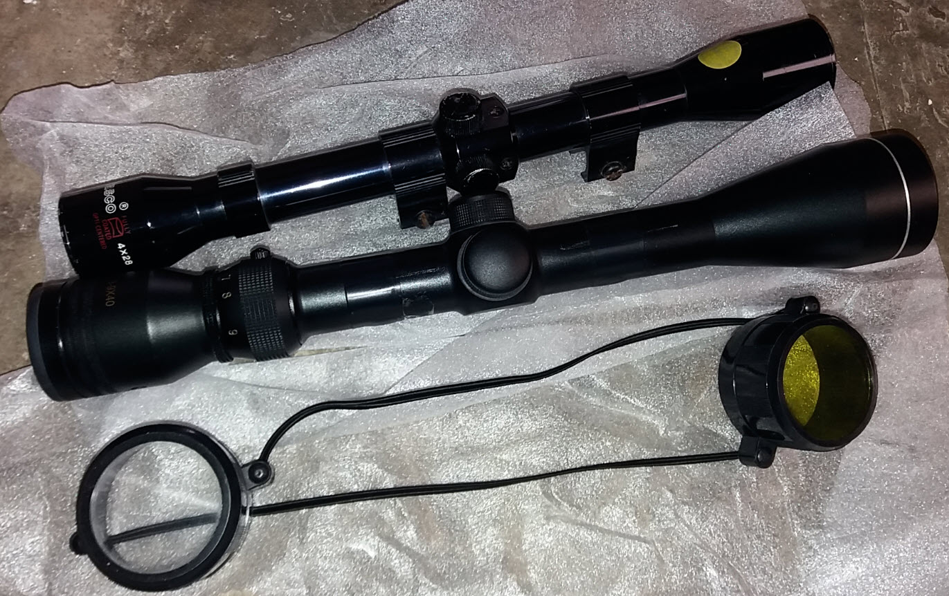 Tres visores para carabina, 1 Gamo 3-9x40 (con montura para rail picatini, no aparece en las fotos), 1 Tasco 4x28 (con montura para 11mm) y 1 Gamo 4x32 AO (con ajuste de paralaje y monturas para 11mm). Tengo mas monturas si se necesitan. 45€ los tres.