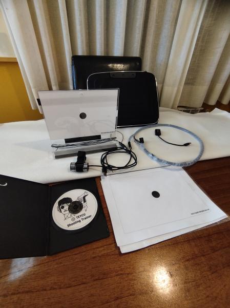 Incluye todo el material original, el CD con el SW de conexión, la sujeccion al arma, la pantalla, dianas de diferentes distancias (de 4 a 10m) todo en su maletín original.