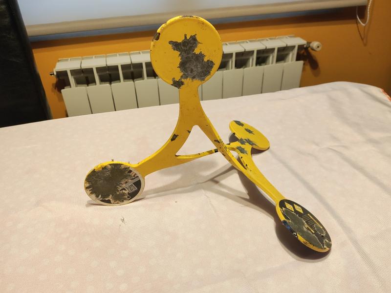 Diana para practicar a distancia , soporta calibre hasta 9 mm cada vez que sufre un impacto cambia de postura en el suelo quedando siempre de pie .medida aprox de los círculos 8 cm. Altura aprox 36cm.