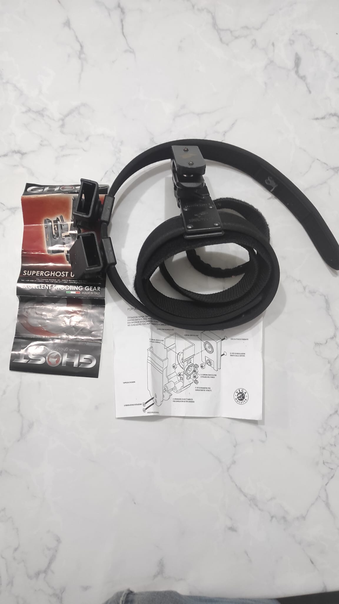 El modelo Ghost Ultimate es la evolución del famoso sistema de esferas de la marca. Es una funda de tiro deportivo muy rápida y segura. El sistema de bola con brazo interno oscilante le permite satisfacer todas las necesidades de los tiradores de IPSC. Se encuentra en perfectas condiciones y prácticamente nueva,ya que se le ha dado muy poco uso. Dotada con dos portacargadores.85€ Roberto telf 653 61 98 41