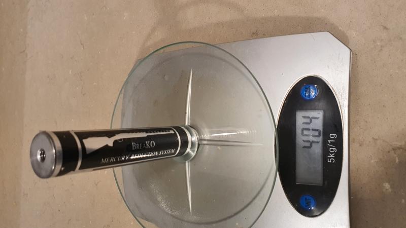 Lo del título... pesa 404 gramos. Mide 10 centímetros de largo y un diámetro de 22 mm.