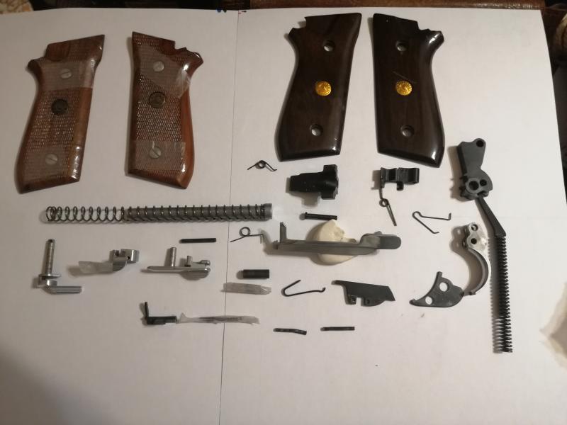 Vendo despiece de la pistola Taurus PT-92 o PT-99, junto con dos juegos de cachas de las mismas.