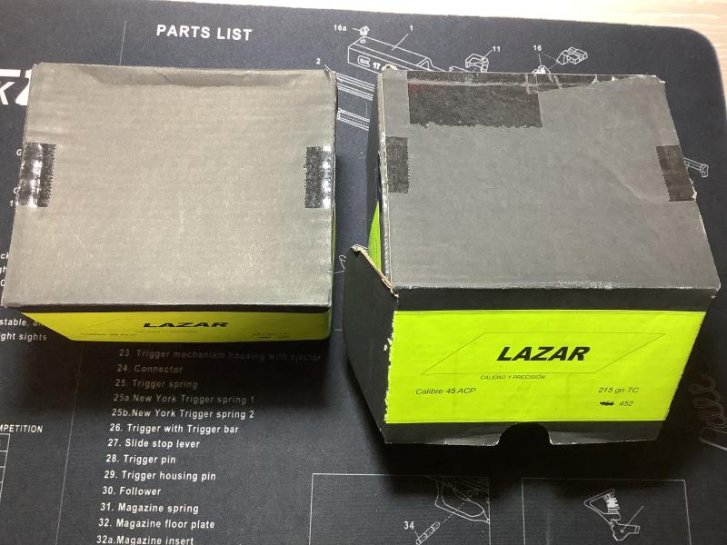 Se venden dos cajas de puntas del .45 ACP lazar troncocónicas de 215 gn, cada caja tiene 200 el precio es de 40€ por caja o 75€ las dos más gastos de envío ,si es en Madrid o Guadalajara se pueden entregar en mano