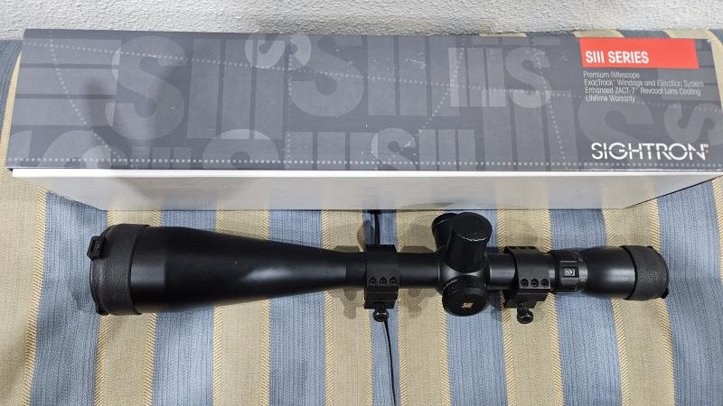 Por cese en la modalidad, vendo este visor Sightron 10-50 x 60 MIL DOT en perfecto estado. Peso 1.008.gramos. Está en Valencia, con su caja y accesorios. Incliye anillas para veawer. No interesan cambios. Precio: 650 eur más portes