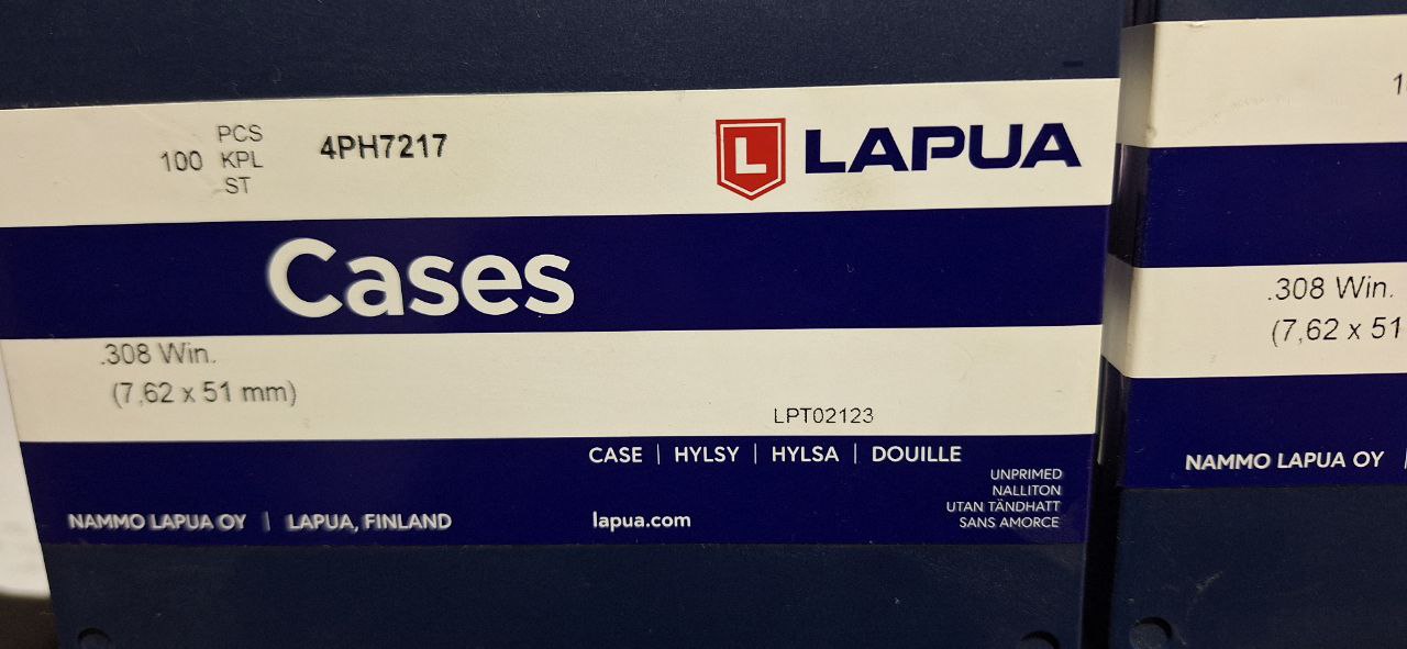 SE VENDE 200 vainas LAPUA cal.308. Las cajas están sin abrir