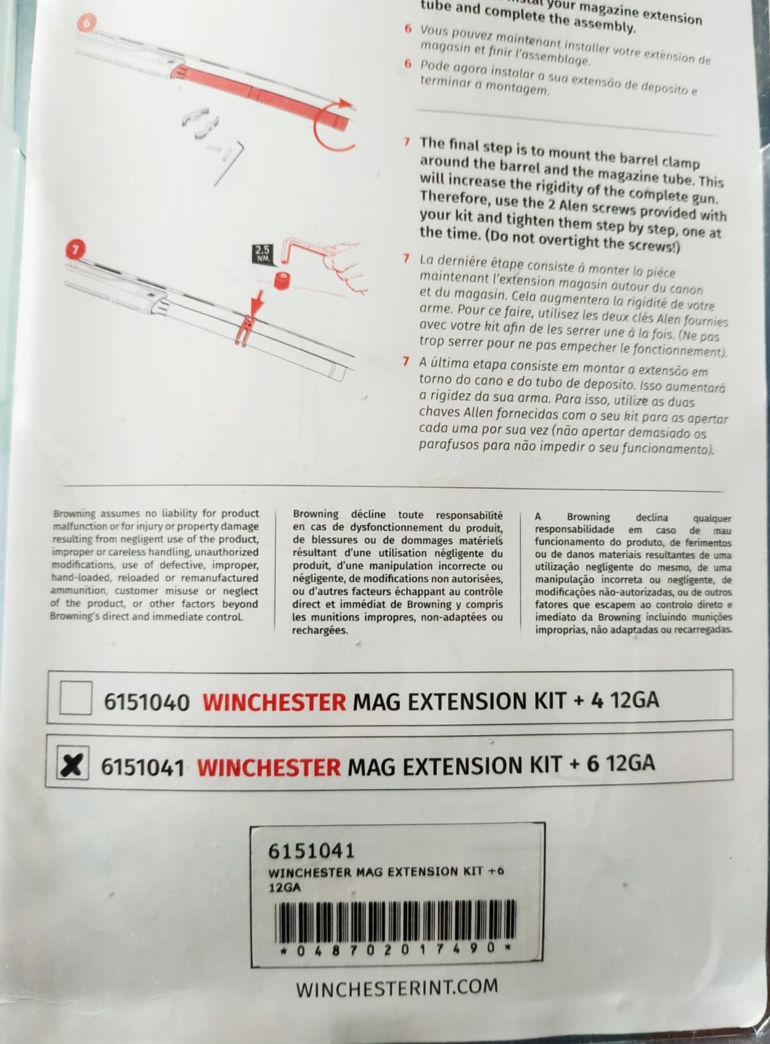 Tubo extensor cartuchos Winchester para escopetas calibre 12.
