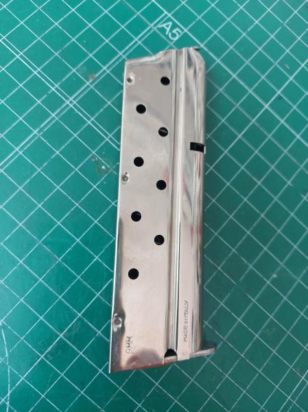 Vendo cargador 1911 9pb Mecgar terminación en inox. muy poco uso, prácticamente nuevo.