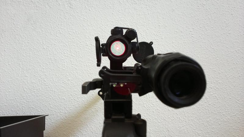 Está construido para ser compatible con los visores de altura estándar, por ejemplo, de la familia Aimpoint, como el que se puede ver en la 1ª fotografía: ni falta hace decir los resultados que este aparatito obtiene con nuestros "Red Dot"...