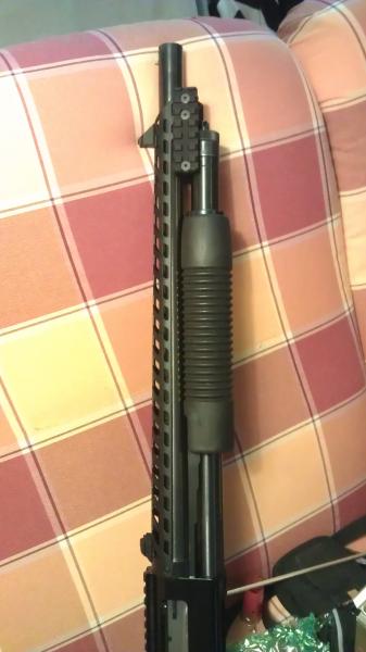 hay va como queda ya montado sobre la mossberg 500 con cañon de 51 cmambien para cañon mas largo pero creo que queda mejor con uno corto