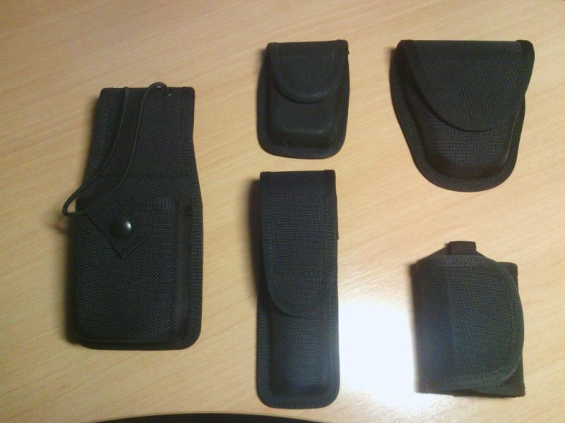 Fundas BLACKHAWK para el uso de accesorios: Funda para linterna; Funda para grilletes; Funda para radio; Funda para llaves; Funda para guantes de latex. Y se añade también una funda para spray de defensa.