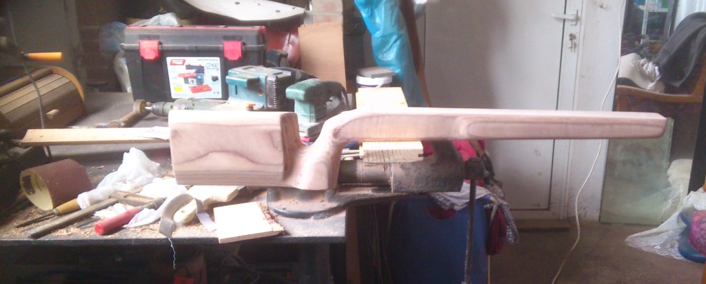 Que tipo de tablero has usado? yo estoy pensando hacer una culata y un guardamanos al winchester del 22 que tengo, y ando dándole vueltas al tema, le quiero hacer una thumbhole estilo del sauer 303, pero con contrachapado,para ir cogiéndole el aire al tema, pues tengo unos trozos de tejo rojo secando para hacérselo también al fn bar, pero prefiero ir ensayando con esto.