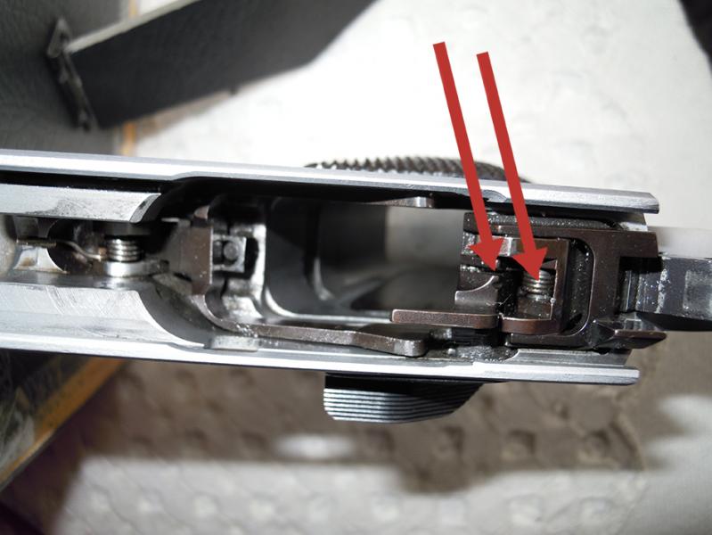 A ver, si se te ha roto la pata del muelle, o el muelle en si, que es lo que sujeta todo el sistema de disparo y la palanca del seguro. La pata, debe ser larga, y encajar en el rebaje que se ve en la foto.............Tal como se ve en la foto.