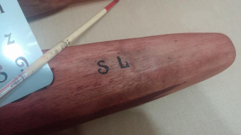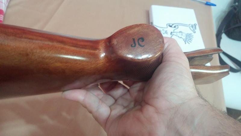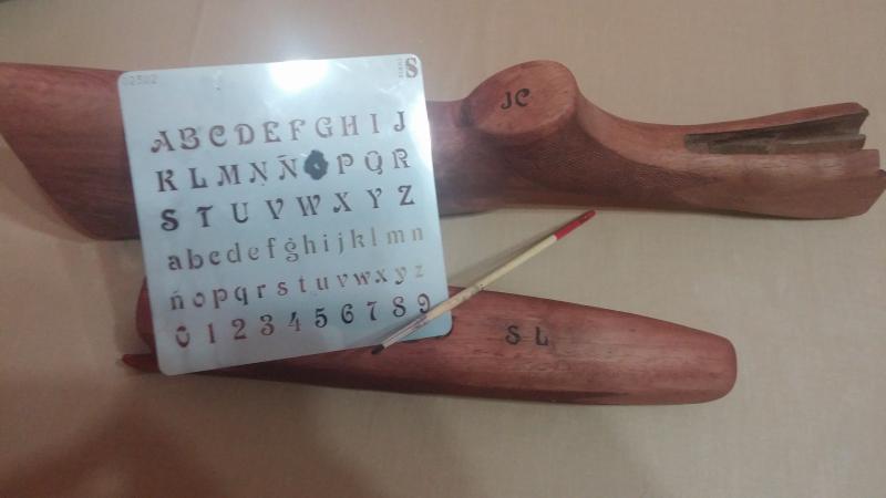 Mis iniciales en el guardamanos y las de mi tío José Caro ubicadas en la base del pistolet para mantener viva su memoria.