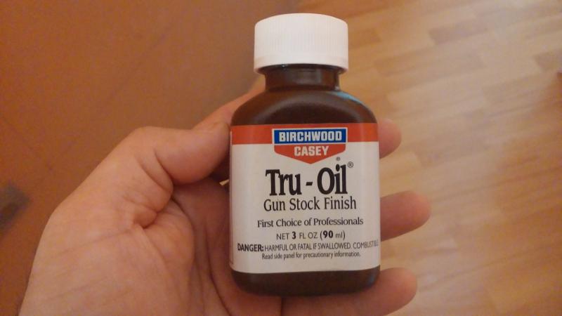 A partir de aquí fue la misma acción una y otra vez. Le di diez manos de aceite Tru Oil de Birchwood Casey. Una sobre otra siguiendo el sistema habitual: aplicar cuidadosamente varias gotas a la madera y extenderlo con los dedos, acariciando la madera hasta que esta absorba el aceite. Una vez seco, lana de acero 0000. Parece que lo fastidias todo y aparentemente te da la sensación de que te cargas la capa que se ha secado pero nada más lejos de la realidad. A continuación limpiaba insistentemente la superficie para que no quedara ninguna mota de polvo ni virutillas de la lana de acero y otra vez aceite.