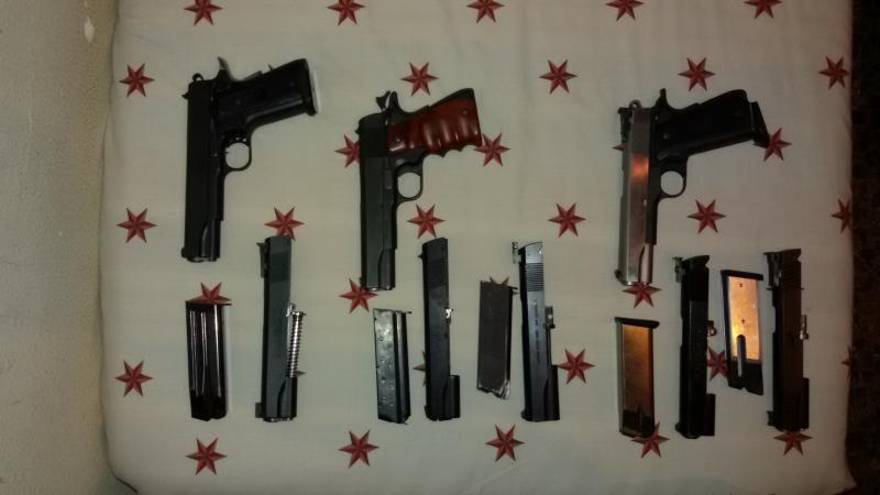 yo tuve una llama max II con carros del 9 y 45, una para ordenance con carros del 45, 40 y 22, y otra norinco 1911A1 con carros del 45, 9 y 22, los carros de la norinco y de la para ord. se podían intercambiar (el cañón no por las rampas), pero los de la llama no se podían montar en estas, ni los de estas en la llama.