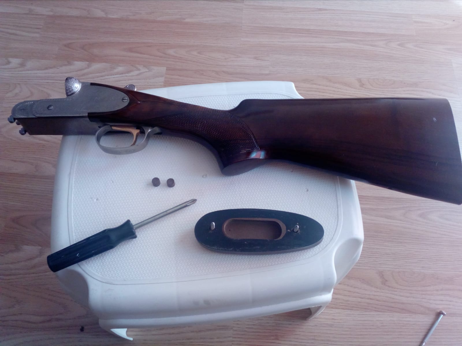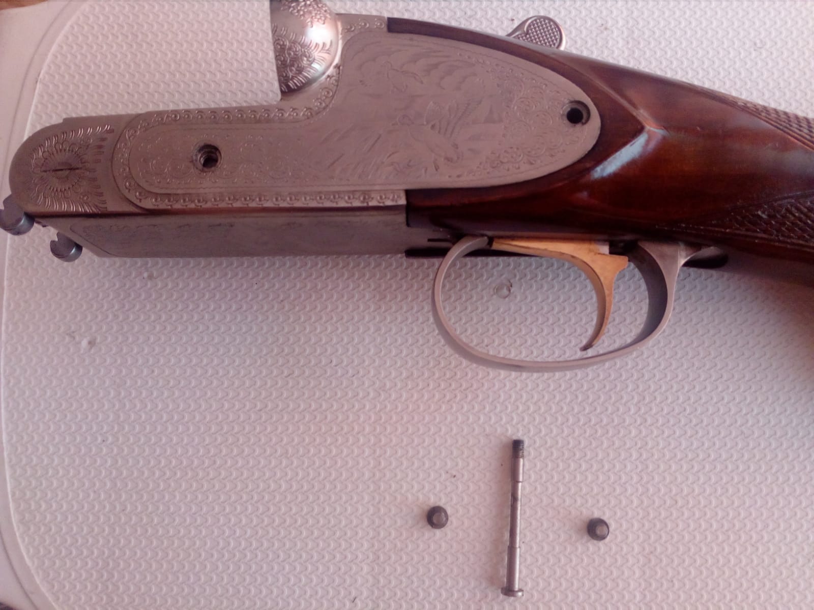 Cómo se saca la báscula de la culata, de esta escopeta paralela de un gatillo selectora. Solo se ven estos tres tornillos