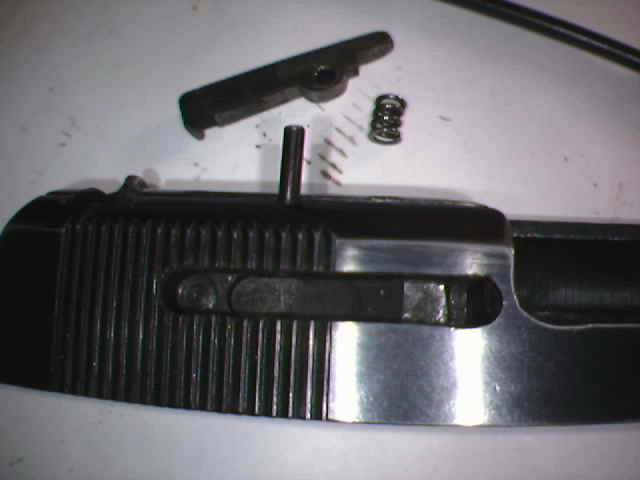 Extractor y aguja percutora saldrían sacando sus pasadores horizontalmente pero de forma muy parecida.