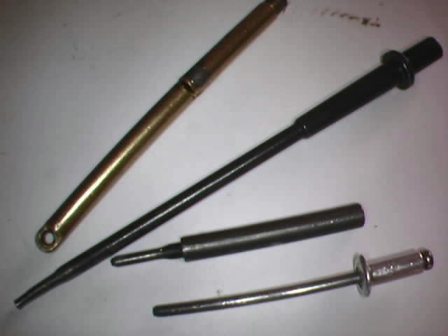 Los botadores que yo uso son percutores rotos de CETME y alguno de STAR SuperB, remaches o barillas de latón de antiguas baquetas