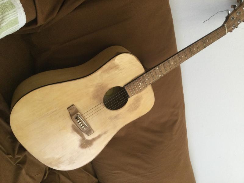 Esta guitarra no pude literalmente, quitarle la ultima capa de barniz ....el decapante “toxico”, y muy potente, antes de que los prohibieran, se llevo las primeras capas pero no pudo la capa base..hubo que lijar, sin lleavarselq, solo afinarla, y barnizar ( si damos aceite linaza ablandamos madera y destruimos sonido). Le meti Birchwood casey por probar, y no afecto a sonido, por quedar como una capa dura muy fina. Es un acabado hasta bueno para instrumentos musicakes,