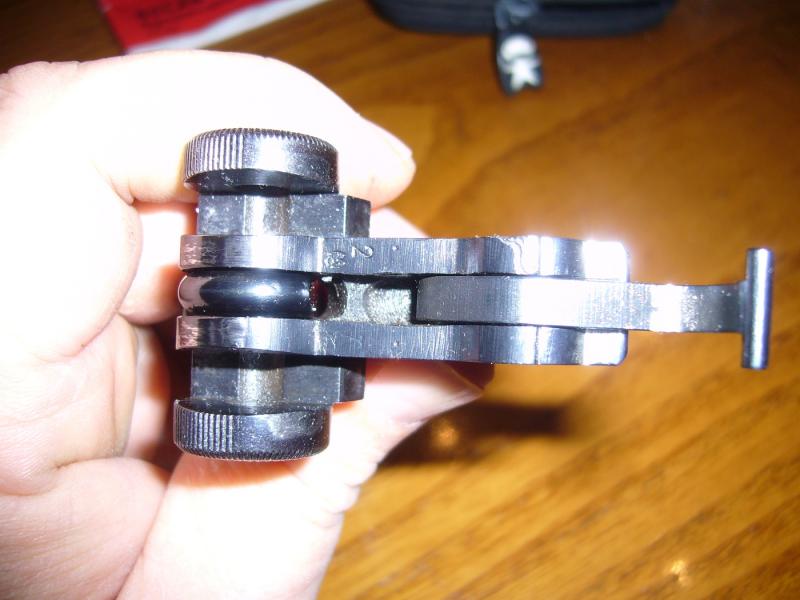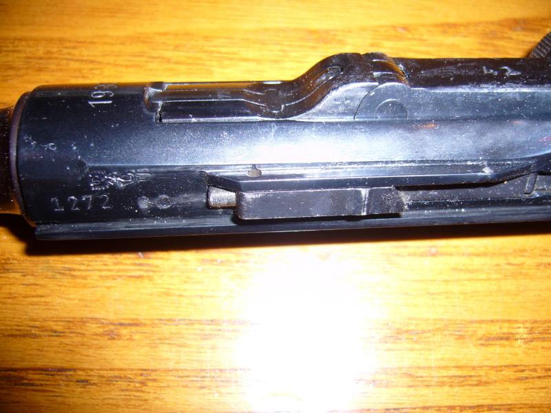 Como te comenté, en la foto parece observarse el orificio del remache que fijaba a la corredera el seguro Schiwy para el fiador, es el que te señalo con una flecha en rojo.