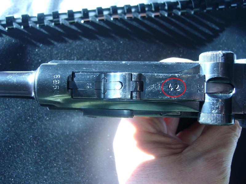 También se cambió en estas pistolas el punzón de prueba militar de la llamada "variante intermedia", que era un águila tipo Weimar con alas bajas, al "tardío" como el que presenta tu pistola con alas extendidas y la esvástica.