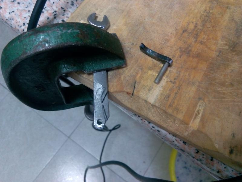 - taladrar, usando broca para acero y un taladro de los de toda la vida, y pulir el interior del taladro. Hay que tener mucho cuidado y práctica para que el taladro sea perpendicular a las caras planas de la pieza
